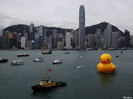 A Hong Kong llegó un peculiar visitante que hizo las delicias de turistas y locales de todas las edades: un gigantesco pato de goma inflable que lleva un mensaje de paz y armonía.